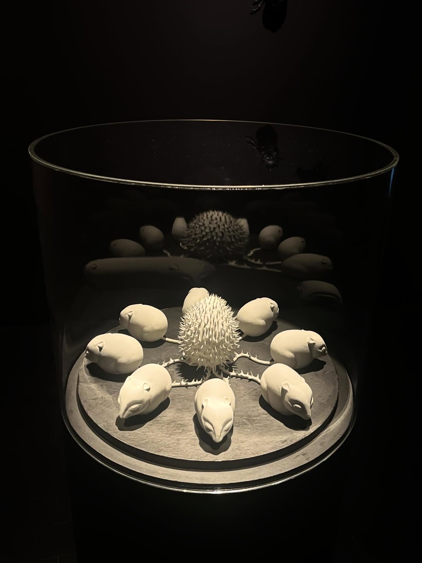 Ana Juan: Bueno, esta exposición es una fábula visual en la que nada es lo que parece y donde, a través de metáforas, se habla del mundo en el que vivimos: un mundo en el que cada vez resulta más difícil discernir entre la verdad y la mentira. Y esa confusión nos lleva al caos. Esa sería una de las partes de la exposición.