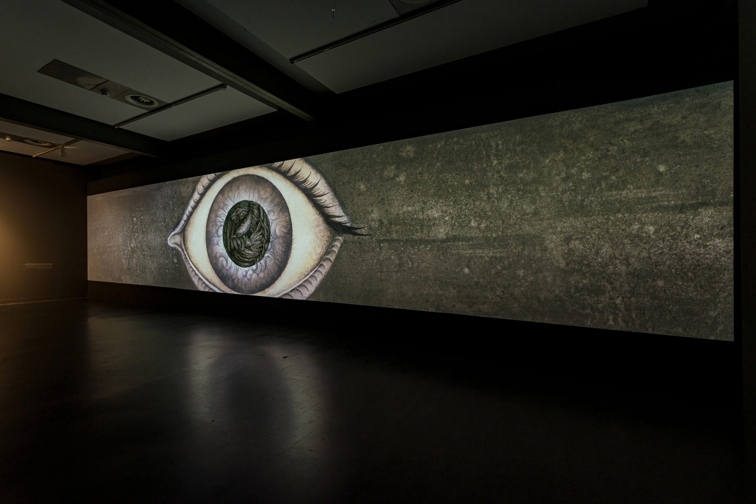 Después hay varias películas, y la exposición termina con un vídeo, al final del recorrido, en una pantalla grande de unos tres por doce metros. Es un vídeo que hice, o que hicimos, para ilustrar una canción de Joaquín Sabina en su último concierto, en su última gira. Y cerramos la exposición con eso.