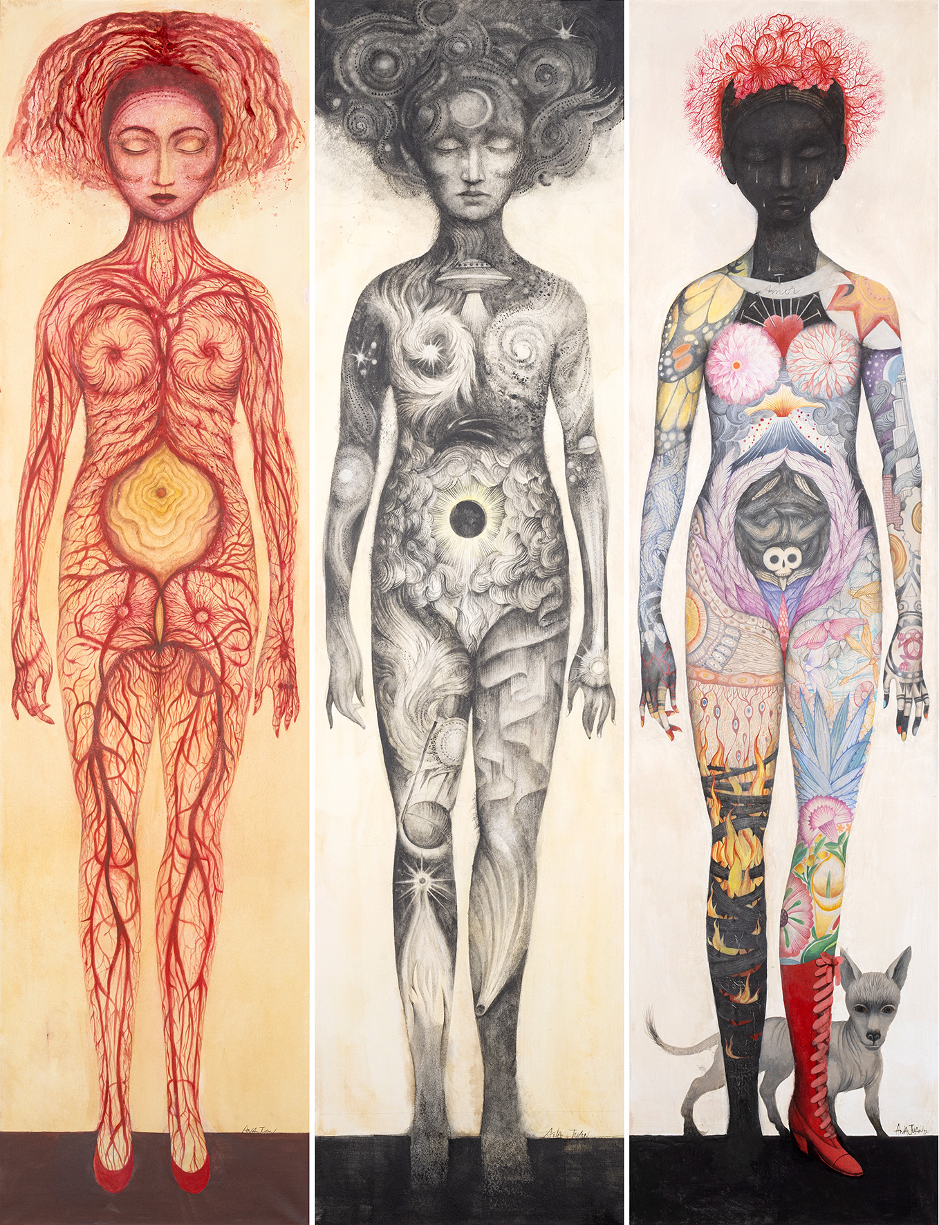 Ana Juan:Bueno, al final el surrealismo tiene mucho que ver con la fantasía, con la imaginación, con ir más allá de lo evidente. El otro día alguien me dijo, al ver la exposición, que era una fábula visual. En esa primera parte, además, los protagonistas son animales. Y, al tratarse de una fábula, evocaba también los alebrijes, esos seres que te acompañan en el tránsito entre la vida y la muerte, que están ahí para que no estés solo mientras te adaptas a esa otra forma de existencia.